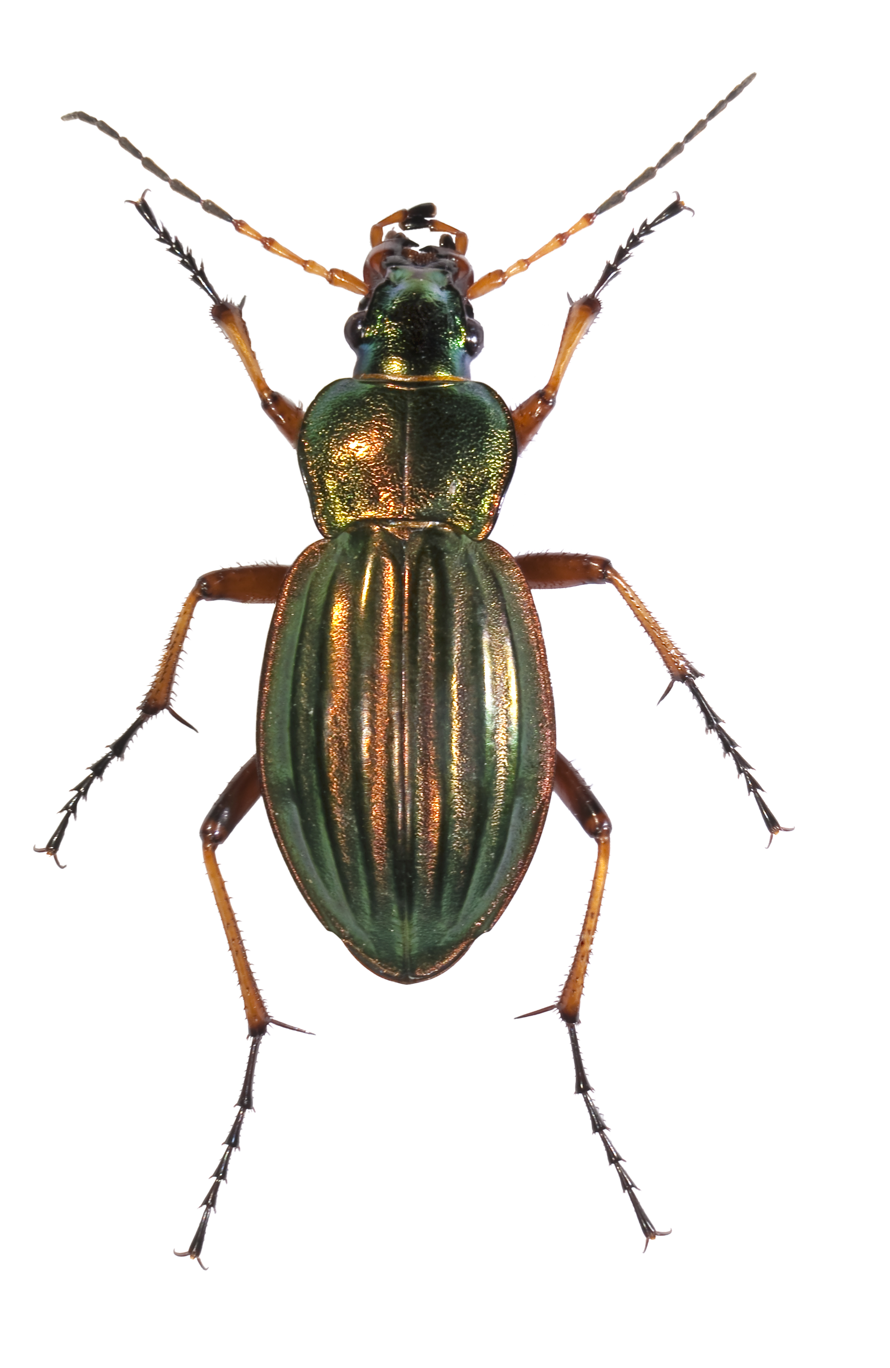 Cette espèce a une taille comprise entre 17 et 30 mm. Ses élytres et son thorax sont verts avec des reflets métalliques. On distingue trois larges lignes saillantes sur chaque élytre. Le carabe doré ne vole pas car ses ailes postérieures sont rudimentaires comme chez la plupart des Carabes. On le trouve dans les jardins, les cultures et en forêt.1