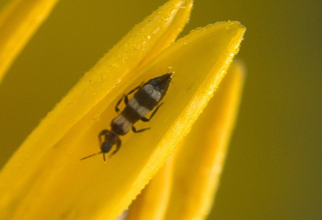 Aeolothrips intermidius ou thrips bandé, est un thrips prédateur de la famille de Aeolothripidae (Thysanoptères). On le retrouve naturellement dans toute l'Europe occidentale et Orientale, le Moyen-Orient et l'Inde. Il vit au niveau des fleurs et se nourrit de larves de thrips et d'autres petits arthropodes. Par conséquent, ce prédateur joue un rôle important, avec d'autres agents de lutte biologique, contre les thrips. Les adultes ont les ailes rayées noires et blanches. Aeolothrips intermedius est habituellement floricole. Les larves ont un comportement essentiellement prédateur tandis que les adultes se nourrissent de pollen. 1 Les larves sont en effet d'excellentes prédatrices ; elles se nourrissent essentiellement de thrips mais aussi, à moindre mesure, d'acariens, d'aleurodes et de psylles. Elles piquent leur proie puis la vident de son contenu. Notons qu'elles tuent plus de proies qu'elles n'en consomment.