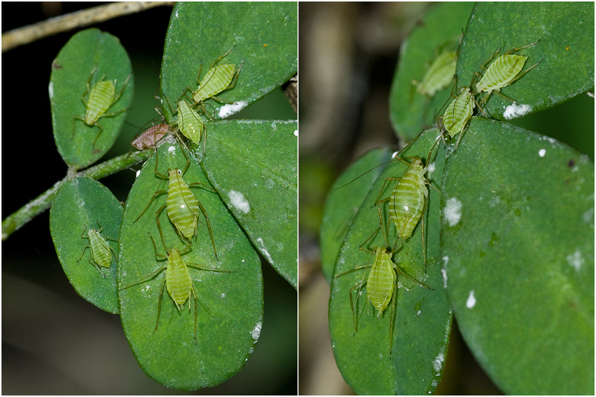 La majorité passe l'hiver sous forme d’œufs pondus sur des légumineuses pérennes. À partir d'Octobre, les pucerons pondent les œufs d'hiver, qui vont éclore dès février ou Mars et donner des individus aptères. Plusieurs générations se succèdent alors par an mais les formes ailées apparaissent à partir de la deuxième génération: elles coloniseront les autres plantes cultivées. 1 Conditions d'activités optimales