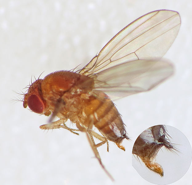 La période de développement de Drosophila suzukii est estimée entre le printemps et l’automne. Des femelles hivernantes fécondées assurent le redémarrage des populations au début du printemps. Les femelles pondent dans les fruits sains et les larves qui émergent se développent à l'intérieur en se nourrissant de la pulpe. Avant de devenir adulte, la larve se nymphose.
