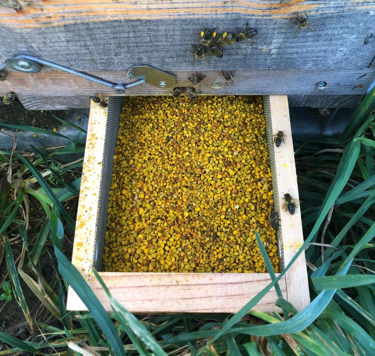 Le transport actif du pollen chez les abeilles est assuré par une corbeille à pollen (appelé corbicula) située sur la face externe des pattes postérieures des ouvrières.