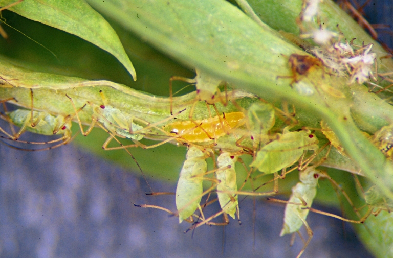 Après 1 à 2 semaines, la larve se nymphose dans le sol humide. Elle forme un cocon marron et ovale, couvert de grains de sable, de mues de pucerons et d'excrétions. 10 à 14 jours plus tard, les adultes émergent. Aphidoletes aphidimyza adulte se nourrit de miellat et vit pendant 7 à 10 jours.