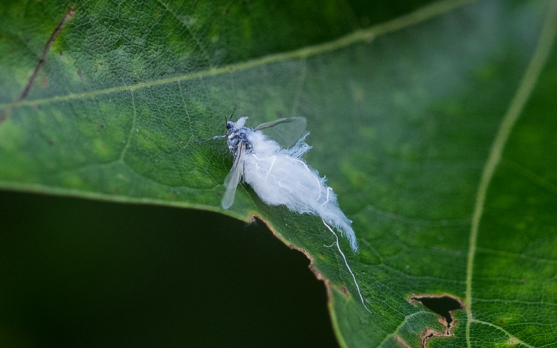 Les adultes mesurent 2 mm de long, leurs corps est de couleur brun-rouge et recouvert d'une cire caractéristique puisqu'elle ressemble à du coton blanc. 1 La plupart des adultes sont aptères, quelques adultes ailés sont visibles en été. 2 Cycle Biologique