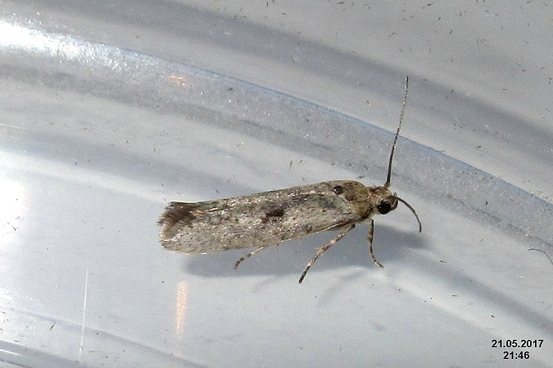Chenille : selon la génération, elle vit soit entre les boutons et les fleurs attachés par des fils de soie, soit dans les fruits (au détriment de l'endocarpe, des cotylédons et de l'embryon), soit enfin en mineuse des feuilles. Elle passe par 5 stades larvaires.