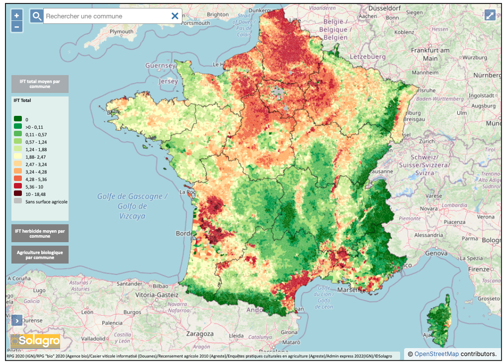 Carte Adonis d'utilisation des pesticides en France