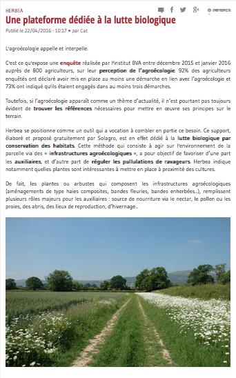 | La Newsletter du 22 Mars 2016 de Campagne et Environnement met en avant Herbea. |